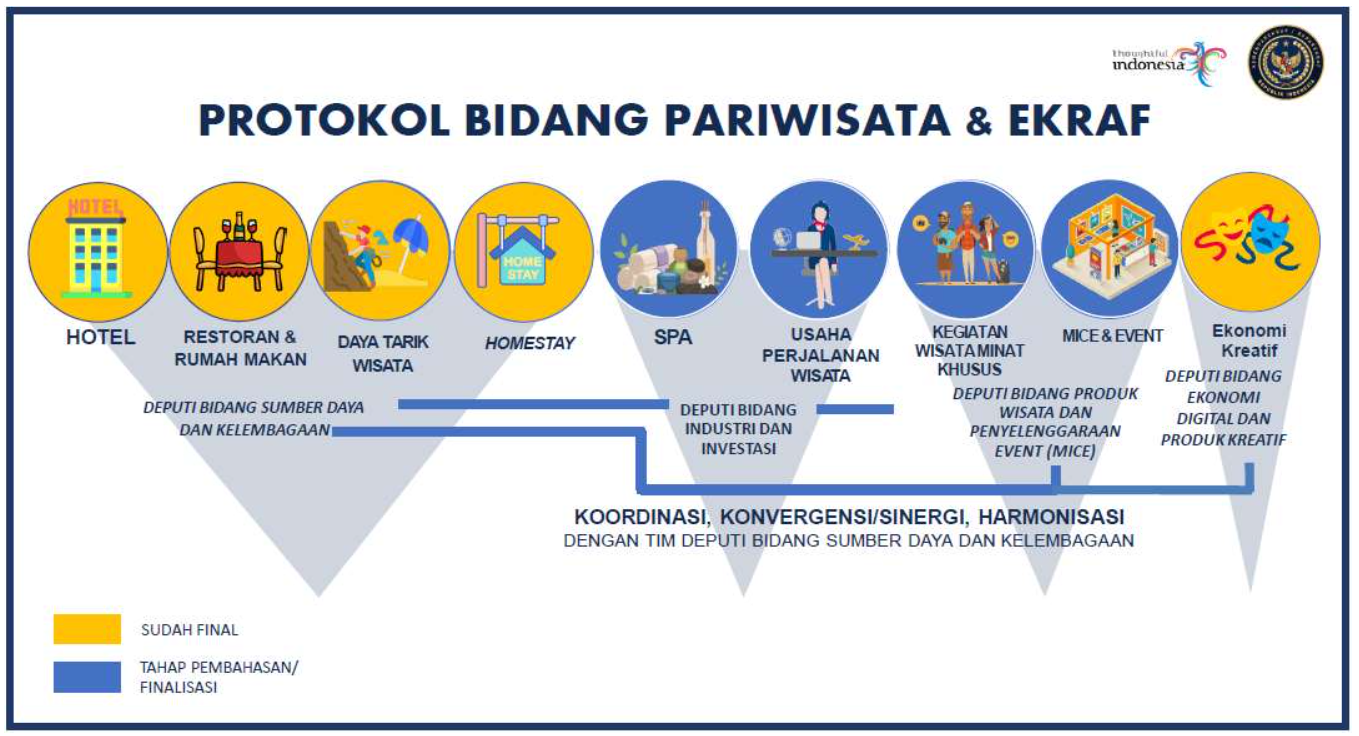 Covid-19 yang melanda dunia telah memukul sektor pariwisata dan ekraf di Indonesia. Angka kunjungan wisata menurun drastis. Okupansi hotel dan penginapan menukik tajam. Dine-in di resto dibatasi. Event-event batal digelar. Sektor lain seperti bioskop, spa, dan wahana permainan bahkan harus dibuka-tutup. Tidak terhitung berapa banyak kerugian terjadi. Imbas virus yang hingga kini telah mengonfirmasi 17 juta jiwa di dunia ini sangat nyata terasa.