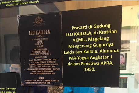 Pada 23 Januari 1950, terjadi Pemberontakan Angkatan Perang Ratu Adil (APRA) di Bandung. Komandan AD, Letkol AG Lembong dan ajudannya, Letda Leo Kailola, gugur diberondong tembakan Pemberontak APRA di depan Markas Kwartier Divise Siliwangi (kini Museum Siliwangi).Dalam sejarahnya, Alumni Akmil Yogya -lulusan 1948-1950- terdiri tiga angkatan, berjumlah 350 perwira.Sebagian besar pernah berjuang di Jawa Barat dan berjuang bersama Pasukan Siliwangi. Akmil Yogya ditutup pada 1950 dan dibuka kembali oleh Presiden Soekarno pada 11 November 1957 di Akmil Magelang, sebagai Angkatan Keempat. Tercatat 10 Alumni Akmil Yogya yang gugur saat beroperasi bersama Siliwangi, antara lain Vaandrig Cadet Anto Soegiarto dan Vaandrig Cadet Hardo Sumeru yang gugur saat Operasi Penumpasan PKI-Muso/Madiun, Letda Leo Kailola dan Letda Johannes Sanjoto yang gugur saat Peristiwa APRA – Bandung, Januari 1950, bersama Letkol AG Lembong, ada pula Letda Torry Soebiantoro yang gugur di Ciamis, 1955, dalam Operasi Penumpasan DI/TII Kartosuwiryo, serta Lettu Oetoro, yang gugur dalam Operasi Garuda II di Congo – Afrika.Museum Mandala Wangsit Siliwangi mengabdikan dan mencatat sejarah pengabdian para Alumni Akmil Yogya bersama Siliwangi. Seperti dalam Operasi Penumpasan APRA 1950, Operasi Penumpasan Pemberontakan Republik Maluku Selatan (RMS) 1951, Penumpasan PRRI/Permesta 1958, Penumpasan DI/TII Kahar Muzakar di Sulawesi Selatan, Penumpasan DI/TII Kartosuwiryo di Jawa Barat, sebagai Kontingen Garuda II Pasukan Penjaga Perdamaian PBB di Congo-Afrika, juga Operasi Trikora Pembebasan Irian Barat, Operasi Dwikora, dan Operasi Penumpasan G 30 S/PKI.Salah satu koleksi sejarah di Corner IKM, Museum Mandala Wangsit. Senapan Mesin Browning water-cooled. Senapan ini kerap dipakai oleh Taruna MA-Yogya, terutama saat Operasi Penumpasan Pemberontakan PKI di Madiun, 1948.Untuk mengenang perjuangan Letda Leo Kailola beserta perjuangan para alumni Akademi Militer Yogya saat berjuang di Jawa Barat, juga saat bertempur bersama Pasukan Siliwangi dan untuk mereka yang pernah bertugas di Kodam Siliwangi maka pada Minggu, 18 Desember 2022, KSAD, Jenderal Dudung Abdurrachman meresmikan Ruang Akademi Militer Yogya dan Siliwangi di Museum Mandala Wangsit.Sejarah Perjuangan Para Taruna dan Perwira Remaja Akmil Yogyakarta memang unik dan heroik. Selain belajar dan berlatih, mereka juga langsung diterjunkan ke medan pertempuran sesungguhnya. Pada kurun 1945-1950, tercatat 42 orang diantara mereka gugur di medan laga. Saat Perang Kemerdekaan 1, tahun 1946, Para Taruna Tingkat I Akmil Yogya, dipimpin Mayjen dr.Moestopo, dikirim untuk bertempur di wilayah Bandung Utara dan berjuang dibawah Komandan Sektor Priangan Utara, Letkol Sukanda Bratamenggala. KSAD Jenderal Dudung Abdurrachman dan Ikatan Keluarga Akademi Militer Yogya (IKAM-Yogya) meresmikan Ruang Akademi Militer Yogya dan Siliwangi (Corner IKAM) di Museum Mandala Wangsit, Ahad, 18 Desember 2022. Corner IKAM diresmikan untuk mengenang perjuangan Letda Leo Kailola beserta perjuangan para alumni Akademi Militer Yogya saat berjuang di Jawa Barat dan saat bertempur bersama Pasukan Siliwangi sekaligus untuk mengenang mereka yang pernah bertugas di Kodam Siliwangi.